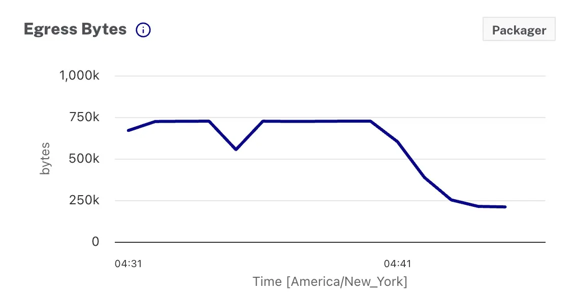 - Egress Bytes - Number of bytes that the packager successfully sends for each request.